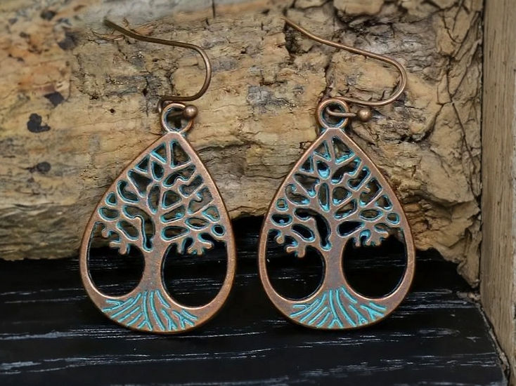 Verleihe Deinem Look mit den bronzefarbenen Retro Stil Ohrhängern "Baum" das gewisse Etwas! Das kunstvolle, im Grünen verwitterte Design verleiht diesen Ohrringen eine charmante Vintage-Note, die zeitlos und dennoch modern wirkt.
